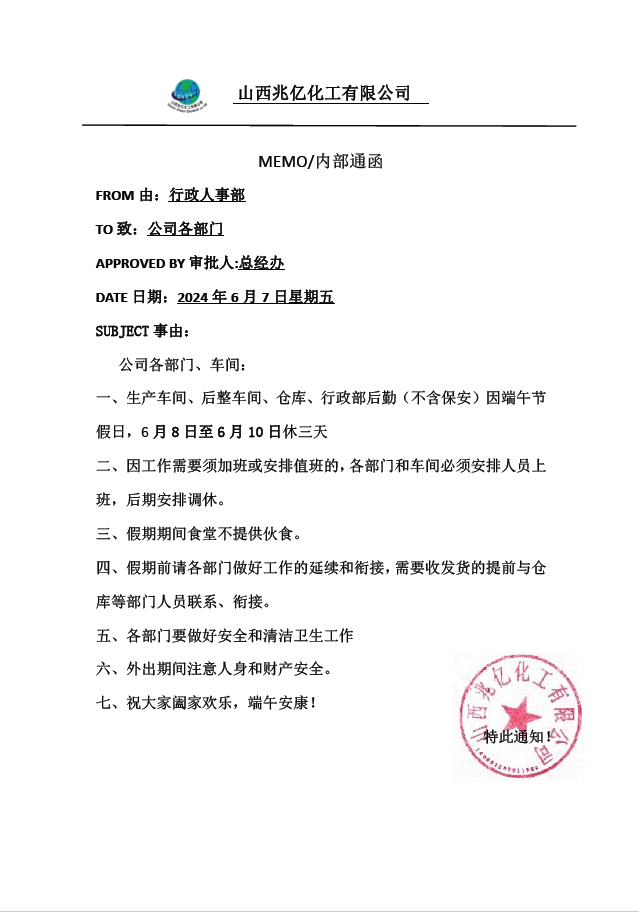 端午放假通知